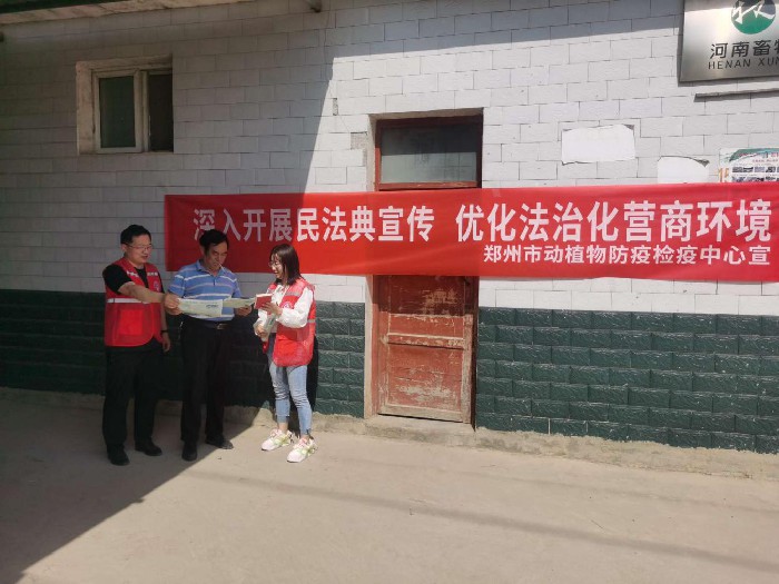 为深入贯彻落实习近平总书记关于广泛开展民法典普法工作的重要指示精神,进一步优化法治化营商环境,提升企业依法经营和管理水平,市动植物防疫检疫中心志愿服务队5月14-15日先后到登封市和中牟县部分养殖企业开展“民法典进企业,优化法治化营商环境”宣传活动,旨在让民法典真正走到企业身边、走进企业员工心里。