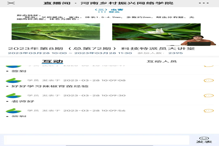 培训会上,赵香梅副研究员以“朝天椒育苗关键技术”为主题,围绕朝天椒育苗的关键技术要点,讲解了朝天椒育苗方式及设施、小拱棚编绳育苗、穴盘育苗、育苗中常见问题及对策等内容,并逐一解答了直播间观众提出的问题。