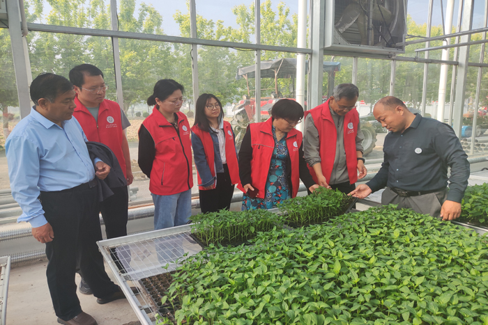 在河南省北科种业有限公司新品种示范园区,特派员们查看了辣椒种子编绳育苗幼苗生长情况,并结合近期降温情况提出辣椒苗定植建议。随后,特派员们还与北科种业总经理梁圣尊进行交谈,深入了解辣椒种子编绳育苗技术的应用与推广情况。