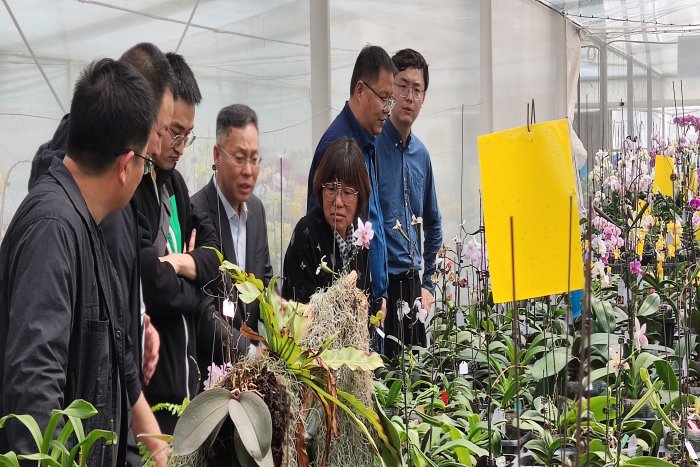 随后,一行人在会议室进行了座谈交流。王教授和蒋博士对我所在花卉育种和组织培养方面的工作给予了高度肯定,就今后的蝴蝶兰、君子兰研究方向、科研手段、试验方法等给出了详实的意见,解答了我所科研人员提出的科研工作中存在的技术性难题;双方在科研方向、科研成果中试、人才培养等方面初步达成了合作意向。