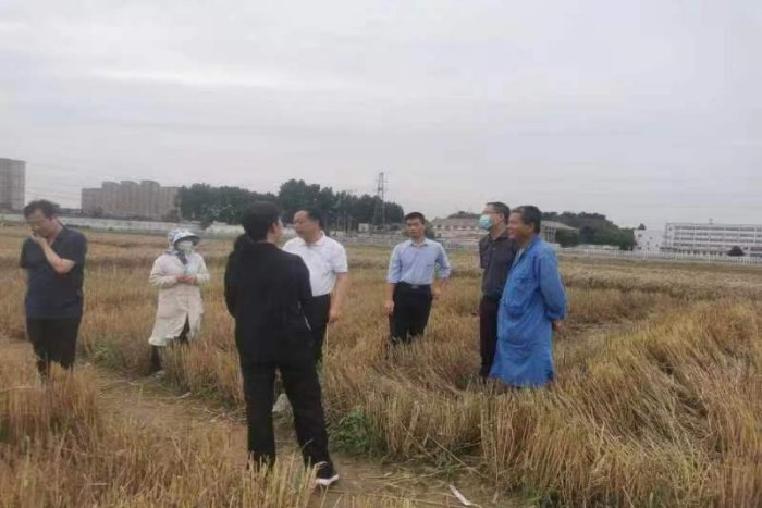 6月2号郑州市科技局总农艺师靳蕾带领农村处一行到我所须水试验场调研麦收工作及科研创新工作,我所副所长王国杰带领科研科陪同调研。