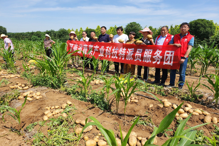 在大桥乡康顺家庭农场,马铃薯收获接近尾声。在服务团的技术支持下,该家庭农场实行“马铃薯+玉米+有机花菜”种植模式,形成了多种作物、多层次、多时序的立体交叉种植结构,种植效益显著。服务团专家们来到家庭农场的马铃薯收获现场,就清除田间杂草及马铃薯残株、加强肥水管理等进行了技术指导。