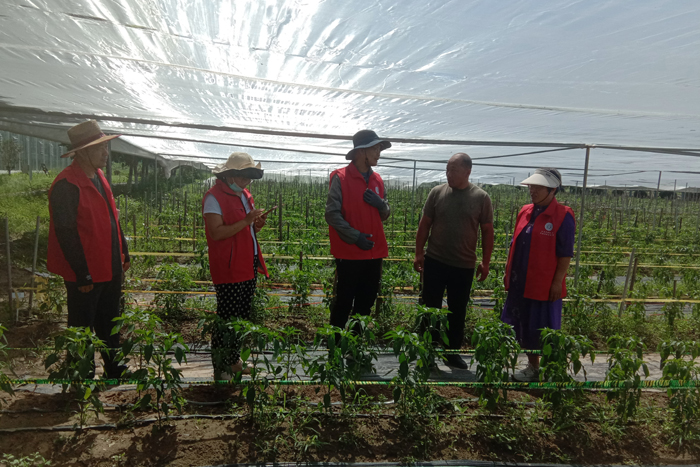 在双河街道林张村,该村采用“早熟朝天椒+露地越冬甘蓝”种植模式,目前朝天椒生长良好,种植模式初见成效。服务团专家们深入田间地头,为朝天椒病虫害防治、冬瓜种植生产提出了具体管理措施。