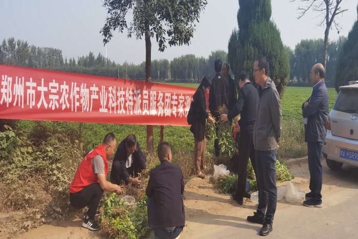 10月13日上午,郑州市大宗农作物产业科技特派员服务团团长王国杰带领服务团成员到巩义市回郭镇查看花生收获情况,并组织有关专家对示范推广的花生品种豫花22号进行实地测产验收。河南省作物分子育种研究院董文召研究员、河南省农业科学院经济作物研究所臧秀旺研究员、河南省种业中心周继泽研究员等专家受邀作为验收组成员参加测产活动。巩义市农委科教科负责同志参加了测产活动。