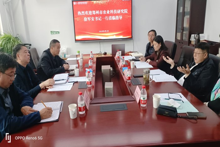 座谈会上,徐军安院长从郑州市农业科技研究院重塑重构、郑州市农业科技创新中心、蔬菜科技示范基地、郑州市现代化农业示范园等四个方面进行了详细的汇报;中国农业科学院蔬菜花卉研究所所长、国家大宗蔬菜体系首席科学家张友军研究员介绍了蔬菜花卉研究所的科研创新及成果转化情况;随后双方进行了座谈交流,就科技创新成果转化、重大项目攻关申报、科技创新平台建设等方面达成了初步共识;随后,徐院长一行还参观了中国农业科学院蔬菜生物育种全国重点实验室、作物细胞育种国家工程实验室。