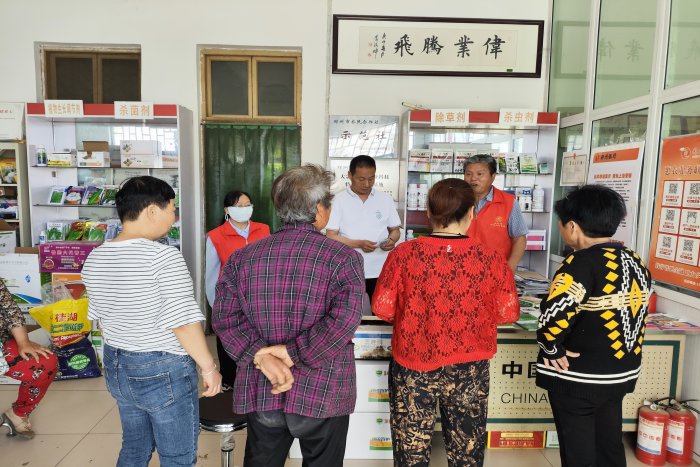 通过田间查看,并与农户进行交流,服务团专家发现,农户对“一喷三防”用药配药程序含糊,服务团专家借助众城农业合作社农资服务店,现场对农户进行了宣传指导,强调在配置药剂时要按1.微肥-2.水溶肥-3.可湿性粉剂-4.水分散粒剂-5.悬浮剂-6.微乳剂-7.水乳剂-8.水剂-9.可溶液体-10.乳油-11.可分散油悬浮剂;对缺墒麦田要抓紧浇水;严禁使用高毒、高残留农药及其复配制剂;配制前应提前清洗施药机械,配制时采用“二次稀释法”,防止药液残留或浓度不匀产生药害;选择无风或微风时施药,若药后6小时内遇雨应补喷;严格遵守农药安全使用操作规程,确保操作人员安全,防止中毒。对缺墒麦田要抓紧补充灌水。