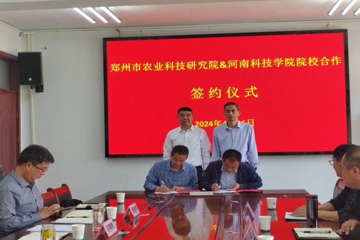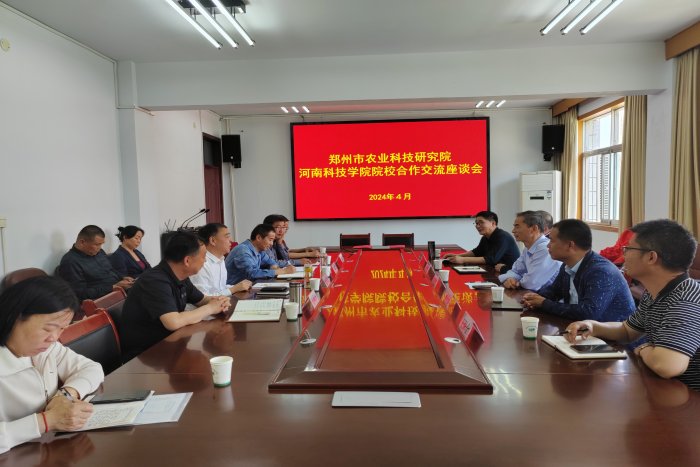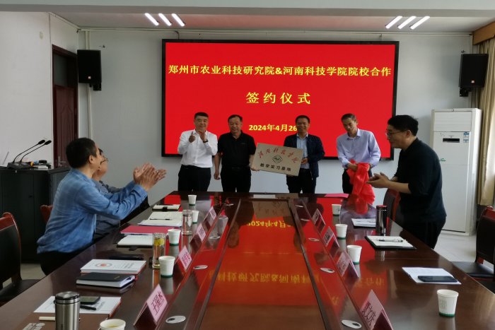 4月26日,河南科技学院园艺园林学院党委书记郭超杰一行五人到郑州市农业科技研究院交流座谈,并签订院校产学研合作协议。会议由党委委员、副院长田朝辉主持。郑州市农业科技研究院党委书记、院长徐军安出席会议。副院长王国杰及有关科研人员参加座谈。
