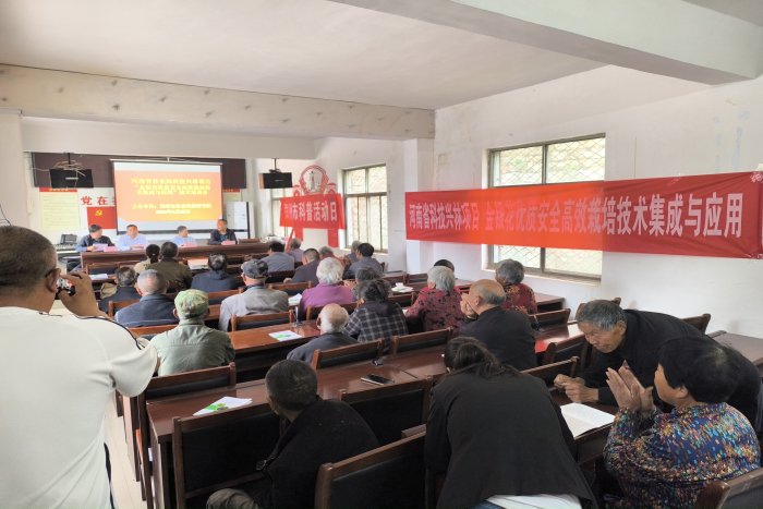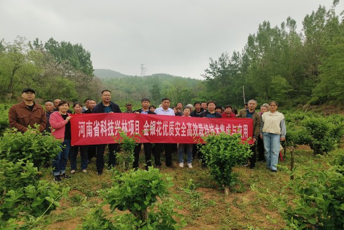 4月28日,郑州市农业科技研究院中草药课题组根据河南省科技兴林项目“金银花优质安全高效栽培技术集成与应用”实施需要,在金银花生长关键时期,邀请金银花种植专家在金银花核心种植区新密市巩米关村召开金银花栽培技术及病虫害综合防控技术培训会。参加培训会的合作社成员40余人,通过发放“金银花高产栽培技术手册”、室内培训和田间培训相结合,提高金银花种植者管理水平。