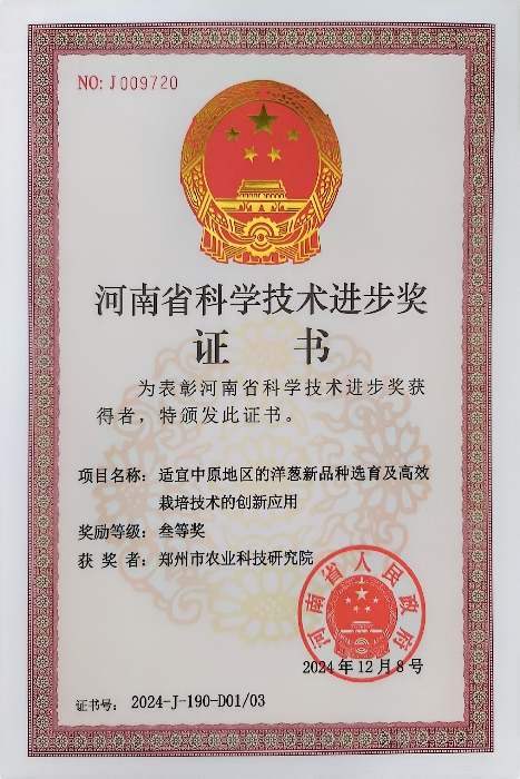 近日,在河南省委、省政府举行的全省科学技术奖励大会上,市农科院田朝辉副研究员主持的“适宜中原地区的洋葱新品种选育及高效栽培技术的创新应用”获得河南省科技进步三等奖。