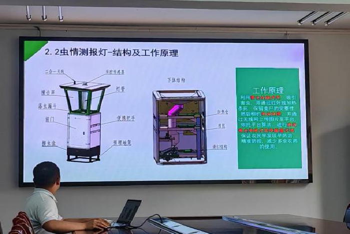 云飞科技团队系统讲解了物联网虫情监测系统、植物病菌孢子捕捉分析系统等核心设备的技术原理与功能。其中,物联网虫情监测系统通过AI图像识别技术实现害虫自动分类计数,动态生成虫情热力图,预警准确率可达行业领先的95%;风吸式太阳能杀虫灯采用光控与雨控双模技术,单灯日灭虫量超2000头,农药使用量降低40%。