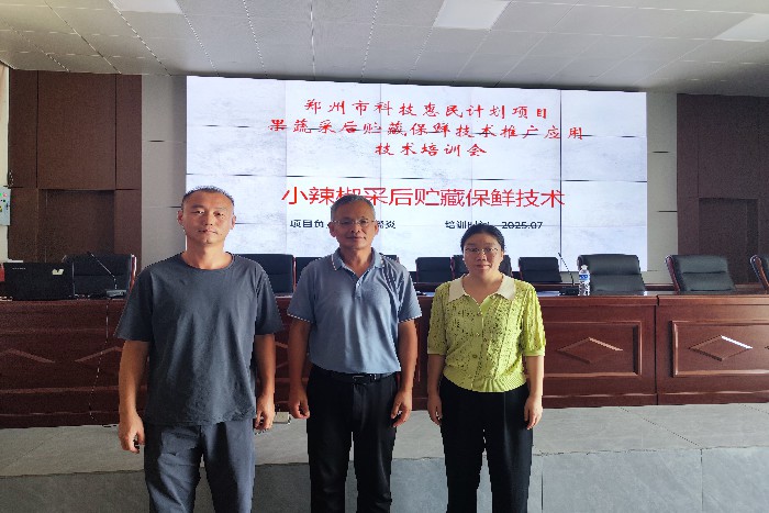 大金店镇地处丘陵地带,昼夜温差大,独特的气候条件让这里的辣椒香辣醇厚,在政府大力扶持和当地辣椒加工企业的带动下,当地辣椒种植面积扩展到4000亩,产量1万吨,成为村民增收的重要途径。然而,“丰产不丰收”的难题始终困扰着种植户。种植户坦言,每年因贮藏不当造成的损失高达20%,遇上市场波动,损失更是难以估量。尽管有加工企业可以托底,但缺乏科学的采后处理技术,成了制约产业升级的“卡脖子”问题。基于上述问题,市农科院承担的市科技惠民计划项目和市蔬菜产业科技特派员服务团在辣椒收获的时间节点召开了技术培训会。