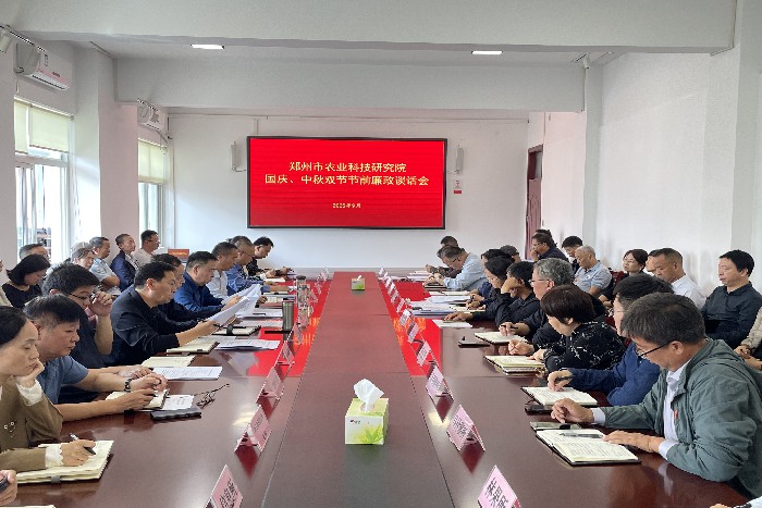 2025年国庆、中秋双节将至,为进一步严明纪律要求,敲响廉洁警钟,筑牢思想防线,9月29日上午,市农科院召开节前集体廉政谈话会,院党委书记、徐军安同志作节前廉政提醒,对节日期间的作风纪律、安全生产、值班值守等进行安排部署。市纪委监委驻市农业农村局纪检监察组张俊科同志列席指导,院领导班子、各支部书记、部门负责人、研究员、副研究员、科研团队主持人、基地中心各园区负责人参加会议。