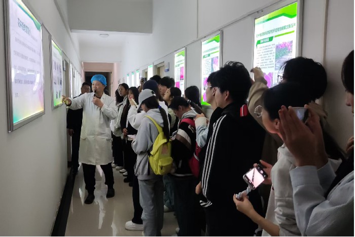 在蝴蝶兰专题环节,研究人员分享了我院在种质创新、杂交育种及新品种选育方面的进展,通过实物展示让师生直观了解蝴蝶兰的“诞生”过程。在组培实验室,师生们观摩了组织培养全过程,技术人员现场演示了无菌操作、培养基配制和快繁技术,学生们对“克隆”技术表现出浓厚兴趣,围绕污染防控等问题积极提问,现场互动热烈。