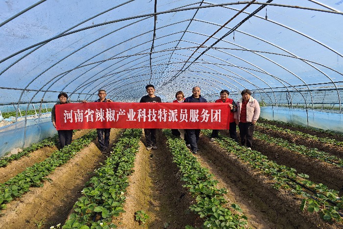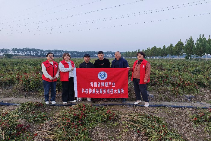 期间先后走访了柘城县凤强种植农民专业合作社、柘城县明伟家庭农场、柘城县兰云种植家庭农场、柘城县心梦种植家庭农场和柘城县广德种植家庭农场,针对连续阴雨天气对辣椒、草莓、花生和番茄等作物的影响,服务团专家提出当前农业生产的指导建议:一、加紧田间排水,利用抽水泵抽水或深挖排水渠排水,尽快将田间积水排除,减轻水涝对作物根系的不利影响;二、对于能下地的田块,开展秋季抢收工作,辣椒套种花生模式首先利用农业机械翻挖花生,就地晾晒,降低花生霉变风险;三、及时采收簇生朝天椒,将植株连棵清除出田块,折掉无辣椒枝杈,仅留结辣椒的主枝晾晒,增加通风透光率,使辣椒快速晾晒成干椒;四、对于单生朝天椒,红、青辣椒分开采收,鲜果推向市场,对于无法及时销售的红椒晾晒或烘干,等待利好商机以干椒商品出售;五、辣椒收获后的地块,抓紧耕作,及时种植下茬小麦或其他作物。