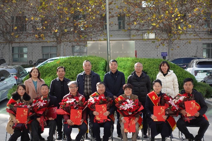 11月25日,郑州市农业科技研究院为王济法、杨海棠等十位退休职工举办了荣誉退休仪式,仪式由副院长王国杰主持,院长徐军安为退休同志颁发光荣退休证书、佩戴绶带、赠送鲜花。