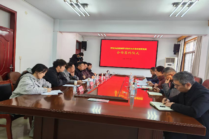 12月19日,郑州市农科院与河南多甜蜜集团举行《联合建设标准化蜜蜂繁育、授粉示范基地协议》签约仪式。郑州市农科院副院长田朝辉,副院长吴小波,河南省多甜蜜集团董事长孟少伟、运营总裁胡磊等,农科院科研管理科、畜牧水产所、基地办及企业相关人员参加签约仪式。