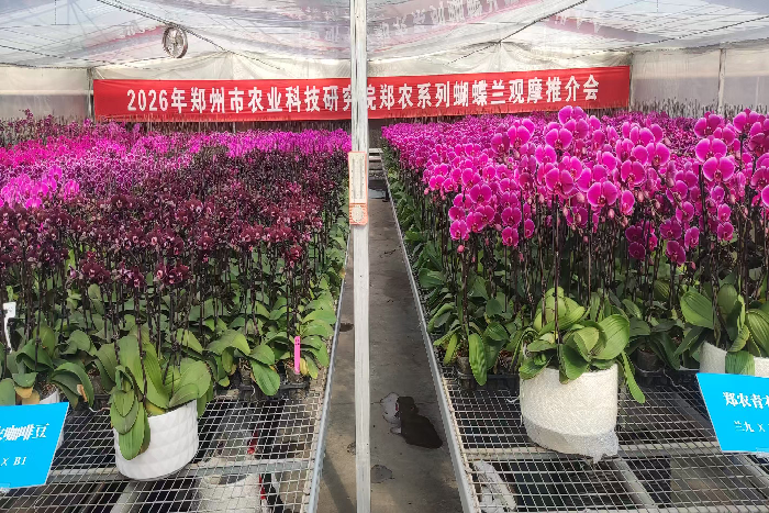 为加快蝴蝶兰新优品种的推广应用、促进蝴蝶兰产业协同发展,1月22日,郑州市农业科技研究院在须水试验场花卉科研基地成功举办“2026年郑农系列蝴蝶兰观摩推介会”。来自蝴蝶兰科研、生产领域的单位、企业、个人代表、市农科院领导及相关人员,以及新闻媒体共70余人参加。