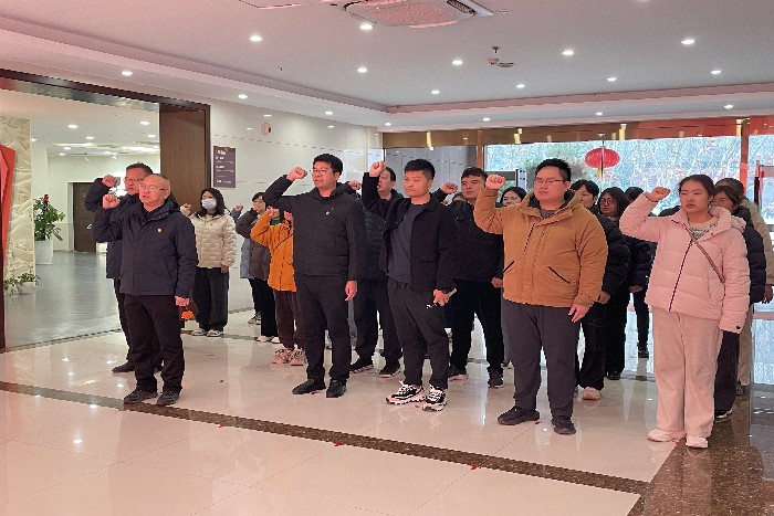参观结束后,全体党员面向鲜红的党旗,庄严重温入党誓词。