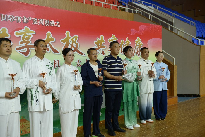 为积极响应市直机关工委关于广泛开展全民健身活动的号召,进一步丰富干部职工精神文化生活,弘扬中华优秀传统文化,6月6日上午,郑州市农业经济发展中心精心选派干部职工组成代表队参与市直机关工委举办的太极拳八段锦交流赛。