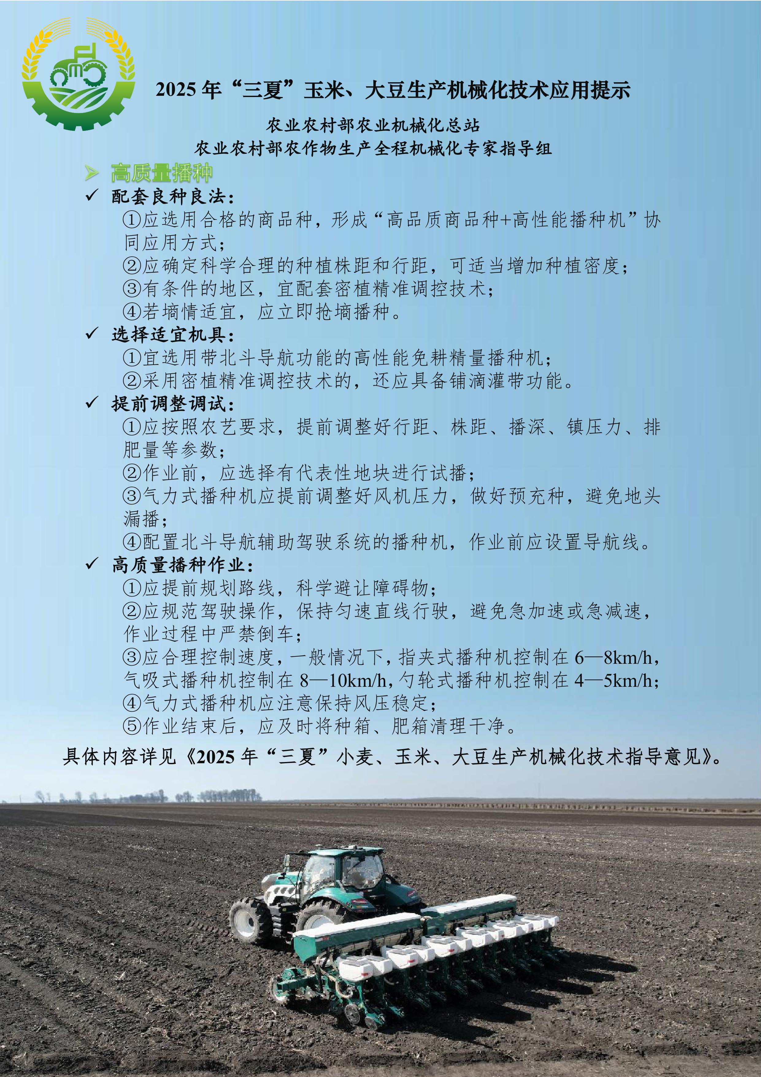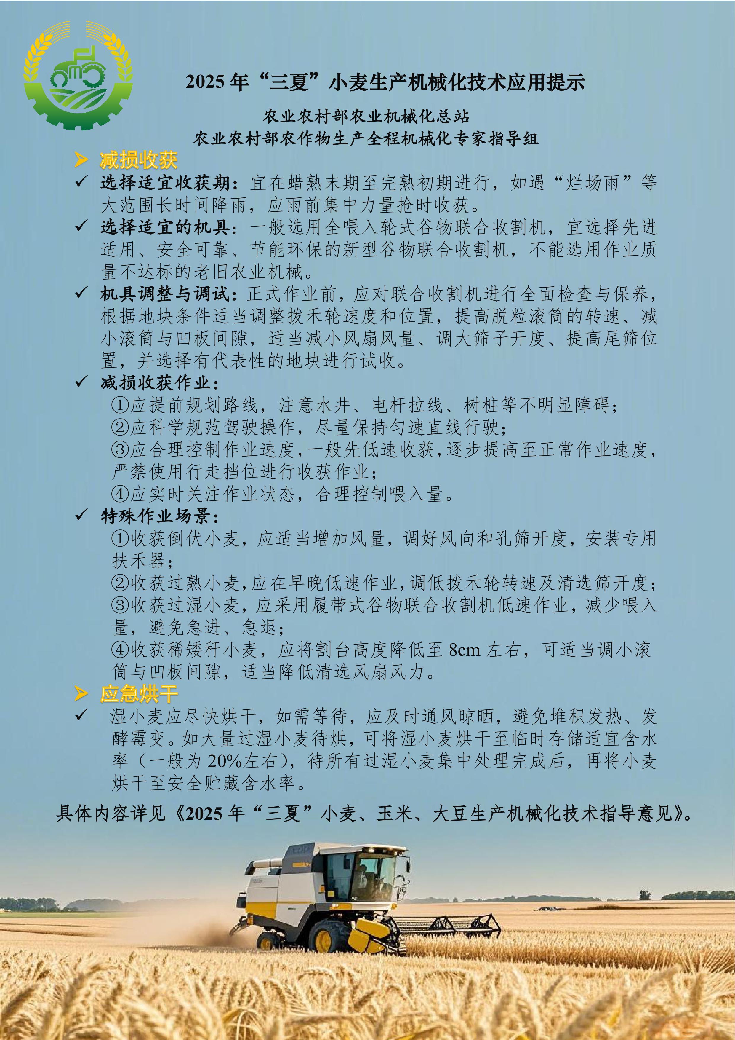 2025年“三夏”小麦、玉米、大豆生产机械化技术应用提示