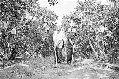 在连片的石榴地里,蔡沟村村民周成军正在忙碌着,或除草,或修剪嫩条……精心照料着石榴树(如图)。