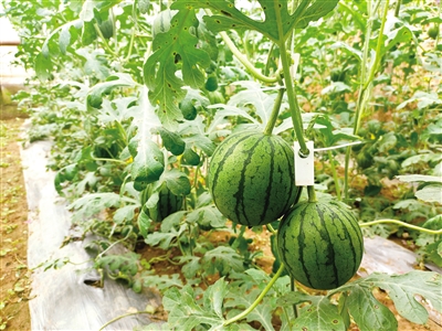 中牟县农委有关负责人告诉记者:“今年中牟西瓜播种面积约2万亩,其中60%为礼品西瓜。”近年来,随着人们生活水平的提高,对西瓜的品质要求也越来越高。为此,中牟县的西瓜品种一直在不断改良。在常年的种植过程中,依据市场需求、种植模式、品种特性、茬次安排等,探索出了早、中、晚熟品种合理搭配的生产结构,形成了错期上市,拉长了西瓜产品的市场供应期。今年的早熟西瓜进入生长期后,气候一直比较适合西瓜生长,小吊瓜瓜型小,瓜皮薄,甜度高,深受大众的喜爱。