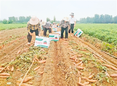 红薯种植带动了周边村民的就业。“俺们十几个人是一个合作社的,平常一有空余时间就会来红薯地干活。这里离家近,不耽误孩子上学,一天能挣100多块钱。”村民时喜琴开心地说。