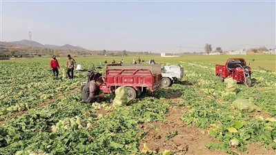 本报讯(记者 袁建龙 通讯员 程志辉 刘跃红 文/图)时值冬日,登封市君召乡海渚村的千亩芥菜陆续成熟,迎来丰收。连日来,村民趁着晴好天气加紧采收,绿油油的芥菜田里,一派热火朝天的忙活景象。