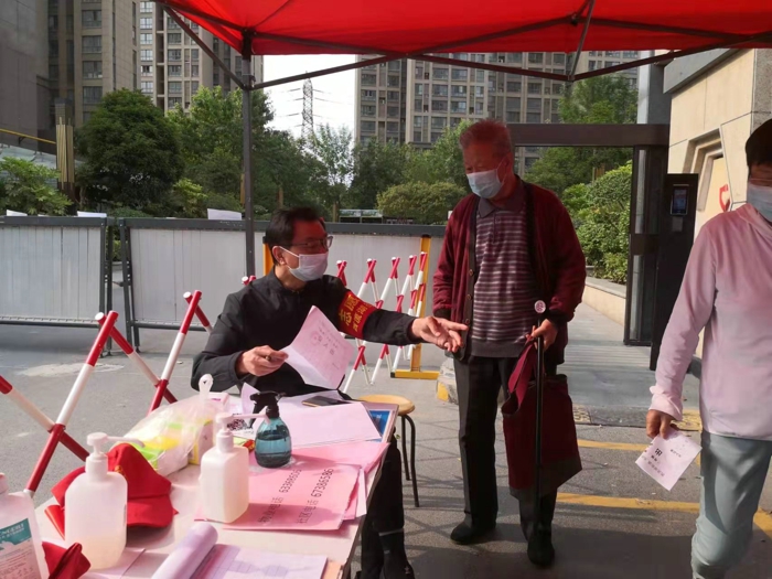 二是迅速行动下沉社区。根据市农委党组要求和机关党委安排,市农委农科所党委、蔬菜所党委和执法支队总支迅速组织居住在二七区的27名党员干部克服出行交通困难,于5月6日下午14时前进入建中街道办事处的4个社区8个无主管楼院持续开展下沉防疫工作,认真做好卡点值守、信息采集、协助核酸检测等任务。